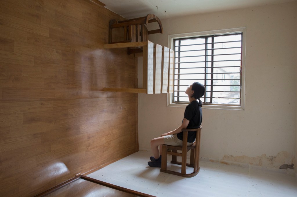 고기린 ● 나무를 중심으로 정체성과 관련된 작업을 진행하는 고기린은 나이테처럼 박힌 시간을 서사화 한다. 이주임박展의 「무제」는 올림픽타운의 이주자들이 버리고 떠난 폐가구들이 스스로 자신의 자리를 찾으면서 만드는 방이다. 그러나 가구들은 분절되며 내부에서 ‘거리두기’ 하고, 문은 관객이 닿을 수 없는 곳에 있다. 작가는 방의 구조를 역전시킴으로써 더 이상 일상을 영위할 수 없는 거리감과 이동의 강제성을 시각화 한다.