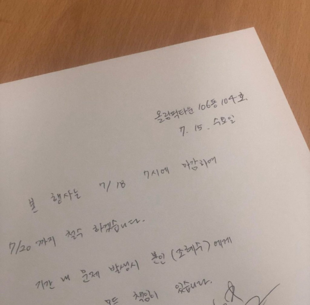 올림픽타운 106동 104호는 본인 조혜수가 법적 세입자로서 7월 20일까지 살고 있는 거주공간입니다. 저희 집의 마지막을 함께 해주시는 손님들께 감사의 말씀을 전합니다.